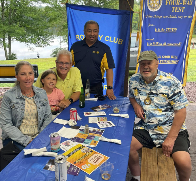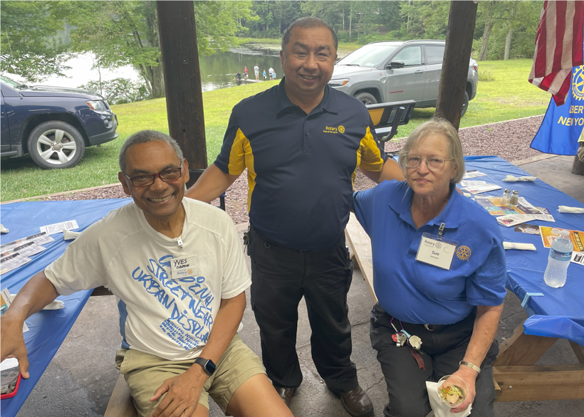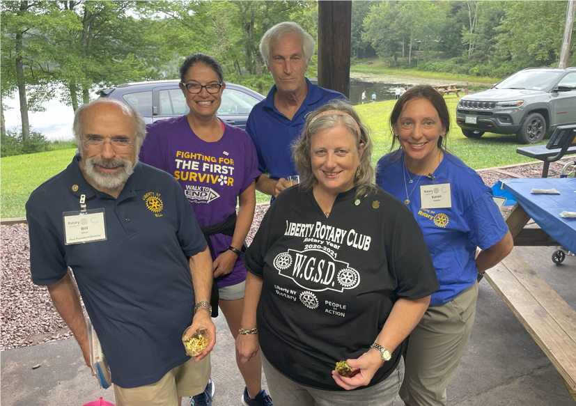 Representatives from Liberty, Livingston Manor, Middletown, Minisink Valley, Monticello, Port Jervis, Wallkill East, and Sullivan Central Rotary Clubs joined us for an evening filled with food, great friends, and true Rotary camaraderie. Event better, the weather was ideal and we held the event at our beautiful lakeside meeting place at Hanofee Park.